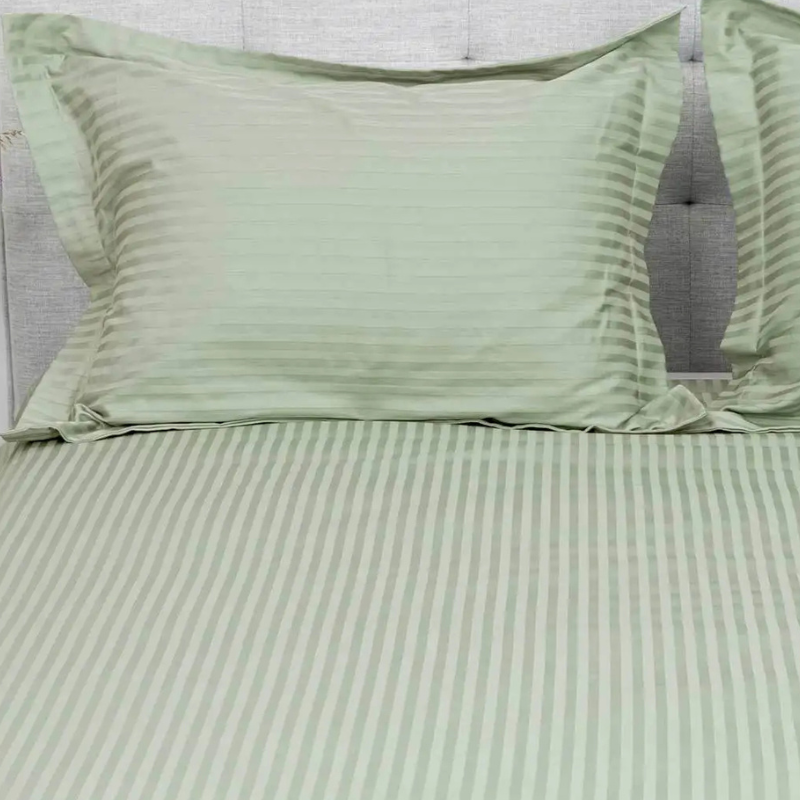 UUS! Satiinist kummiga voodilina triibuline roheline