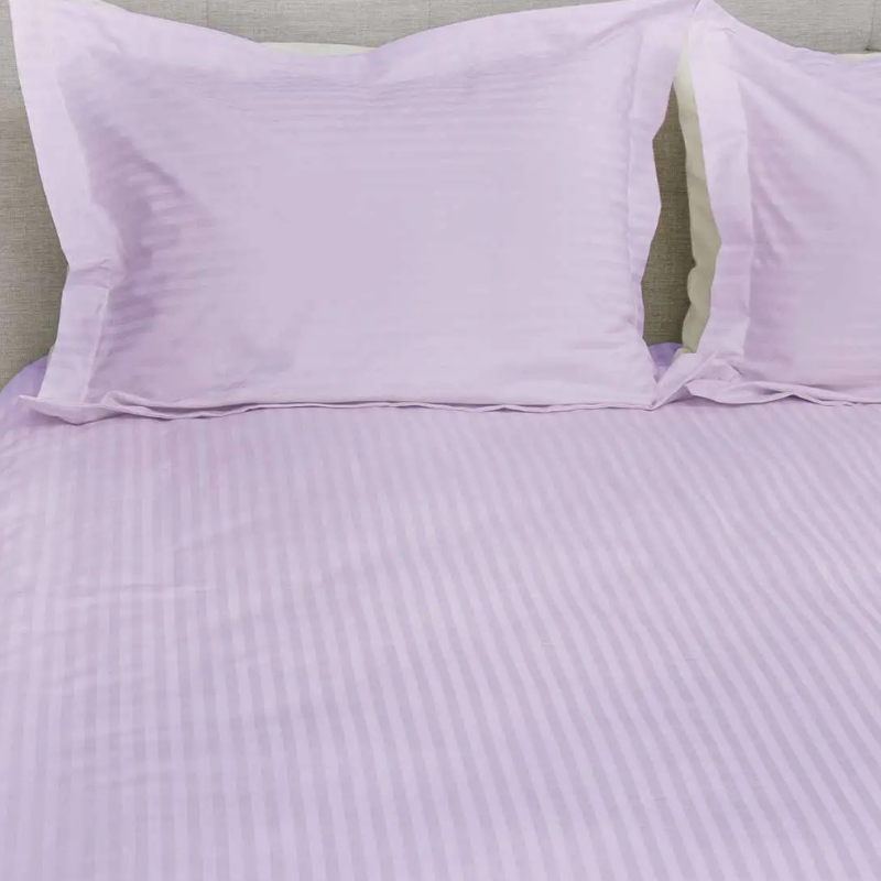 Satiinist voodipesukomplekt triibuline lilla